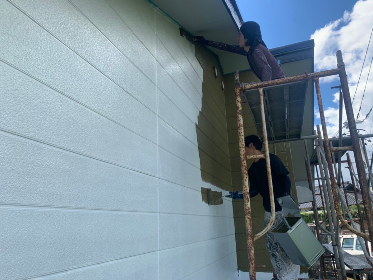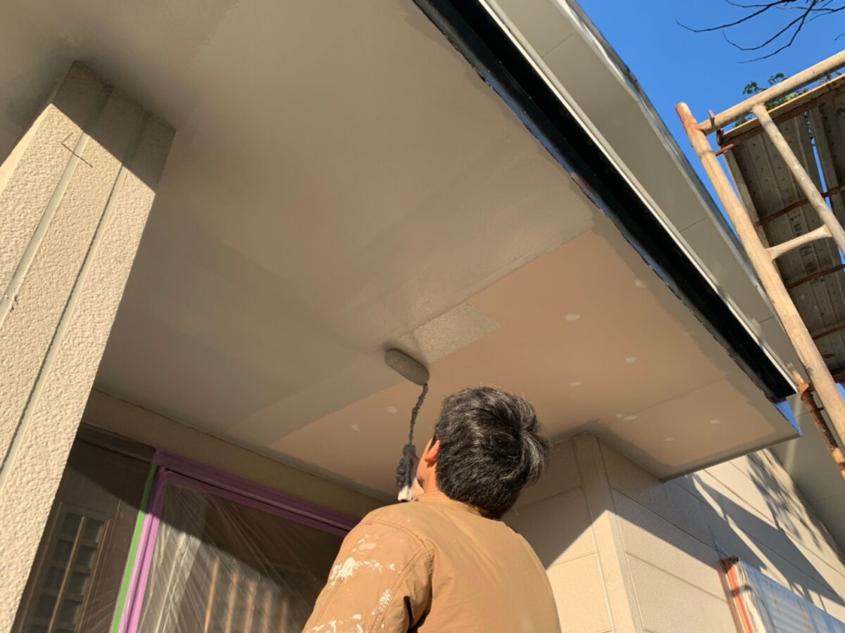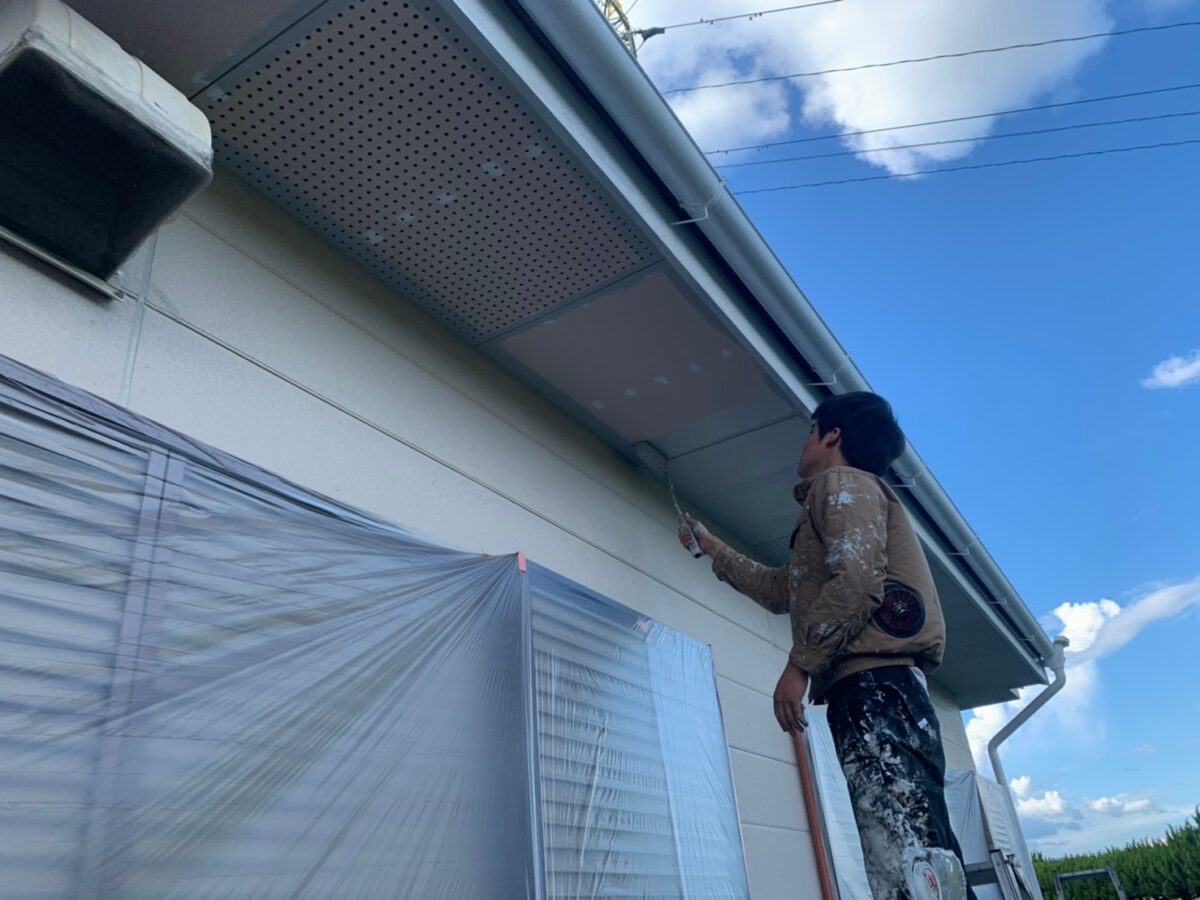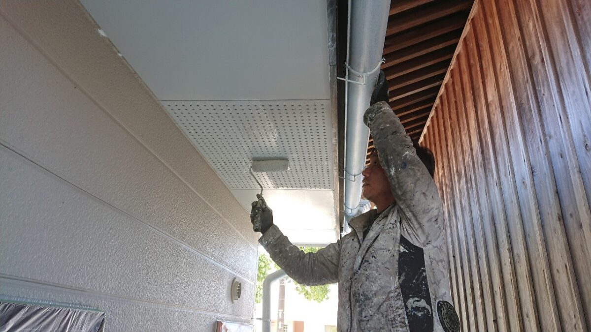 続きまして、破風や樋等の附帯部中塗り状況です。