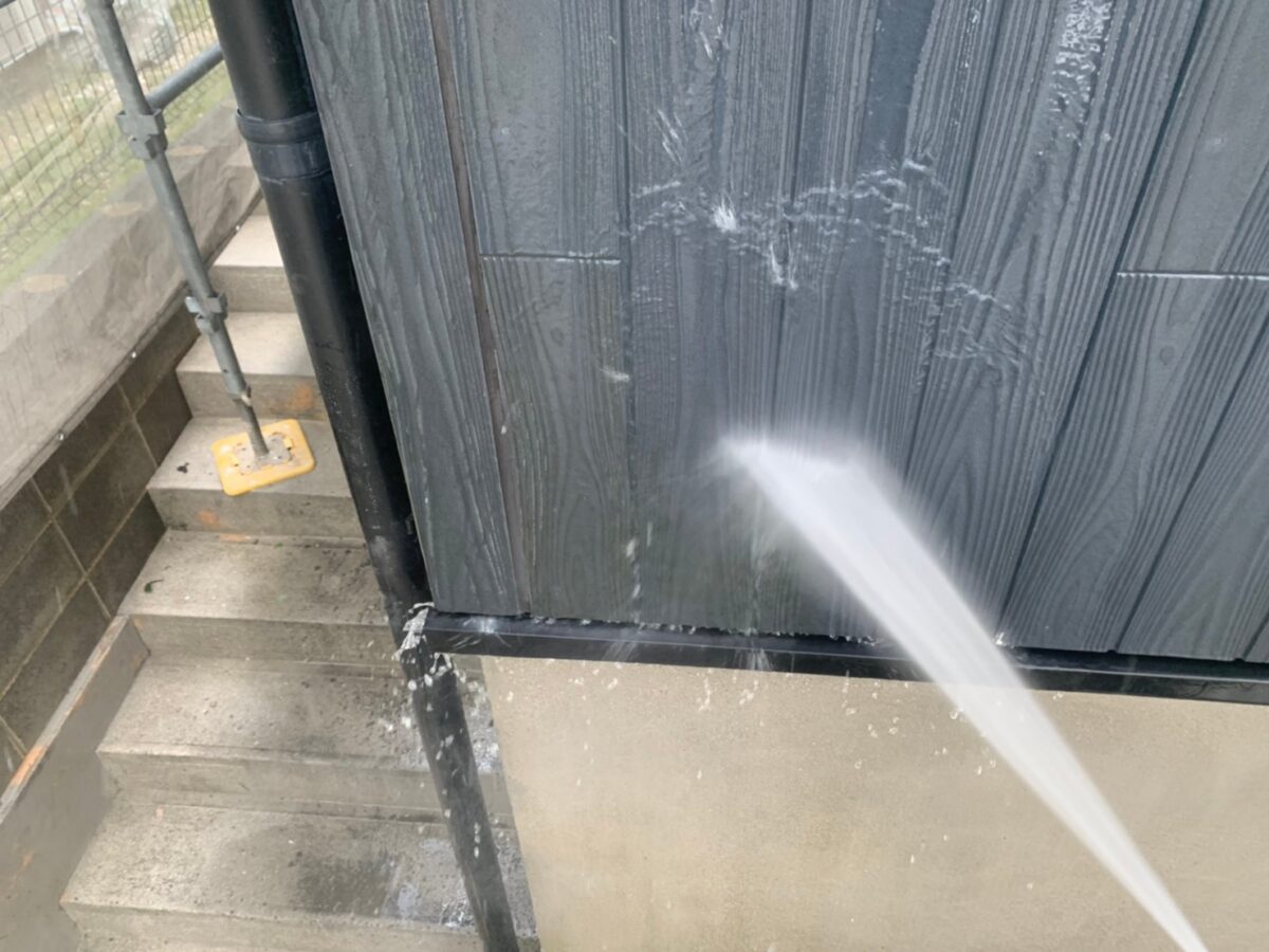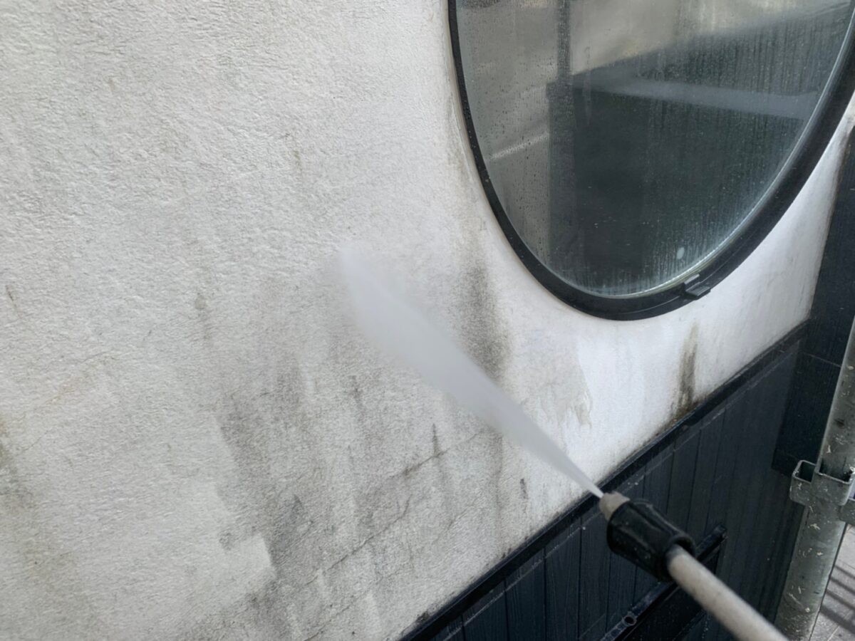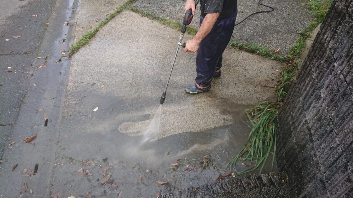 母屋の洗浄が終わったら外構周りや駐車場のコンクリート床の洗浄です。