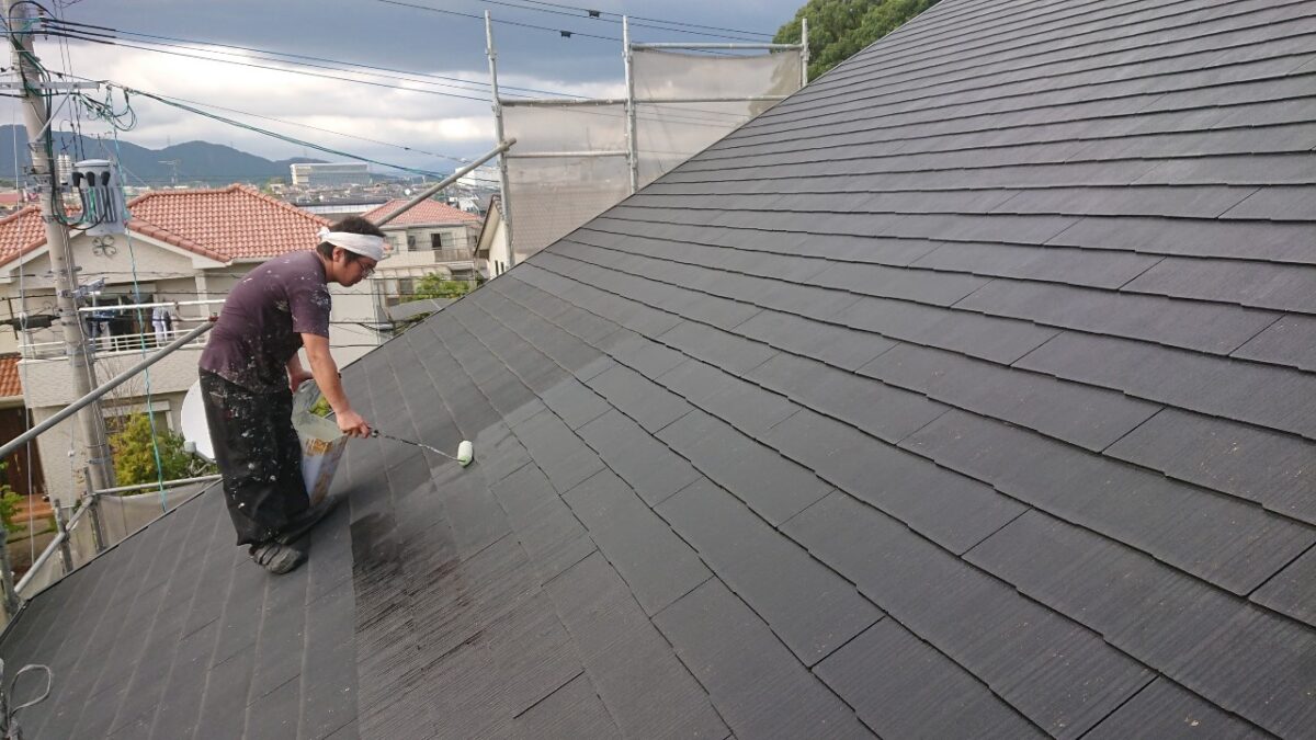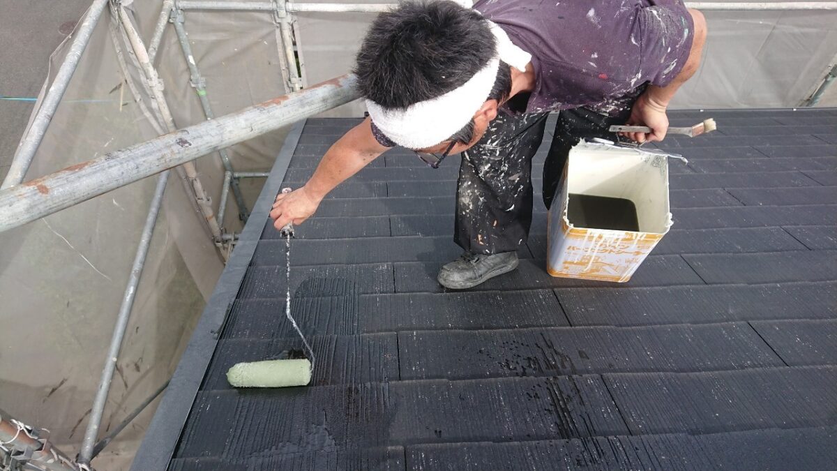 同時並行で屋根の下塗りをやっていきます。