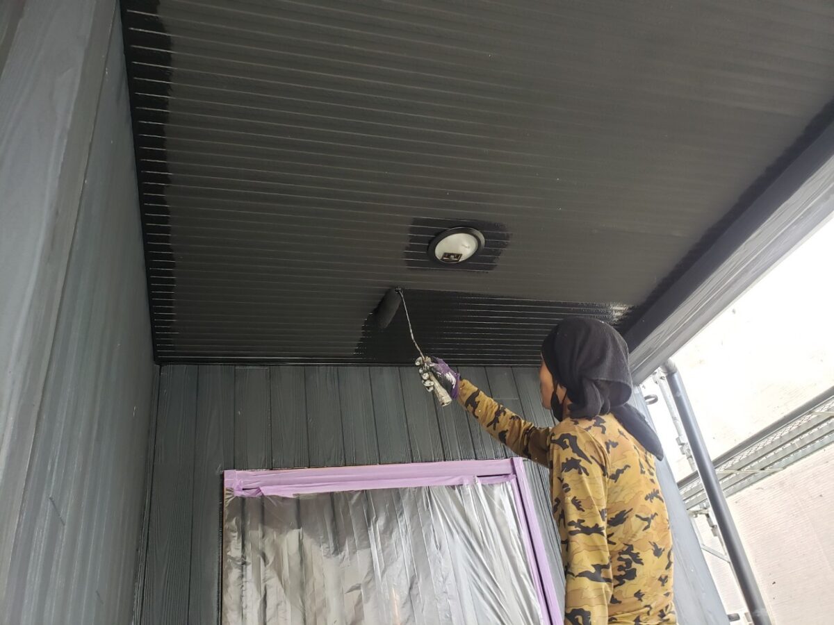 軒裏天井の下塗り状況です。