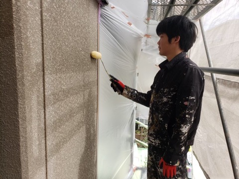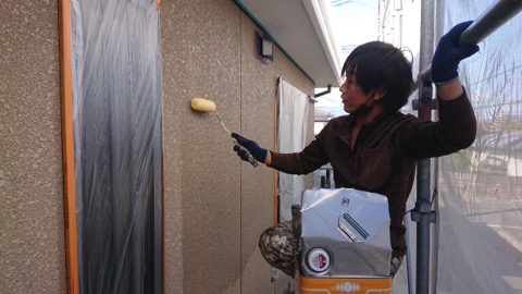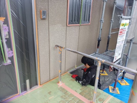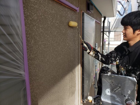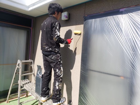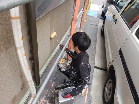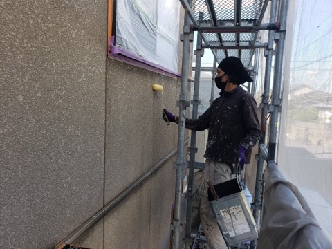 同時並行で外壁下塗りをやっていきます。