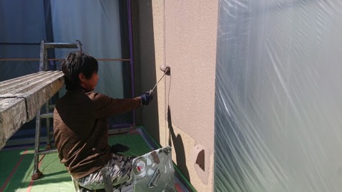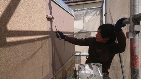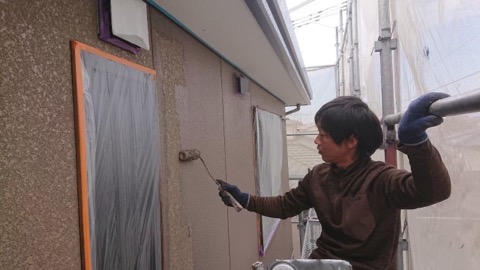 前回の続きより、先ずは外壁中塗りです。