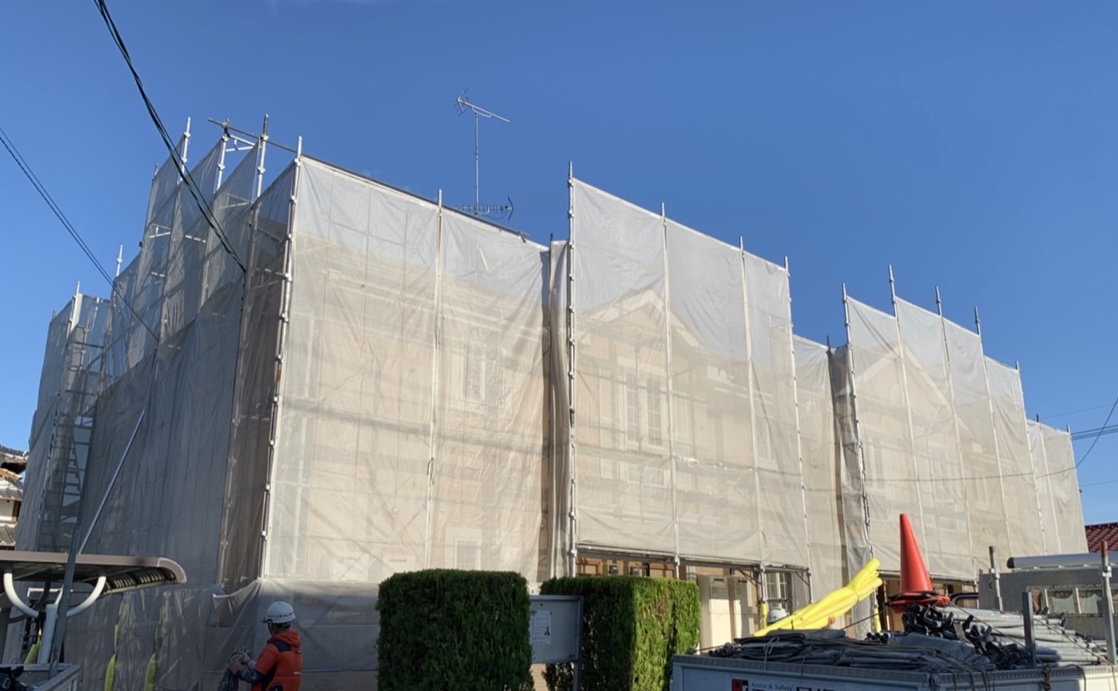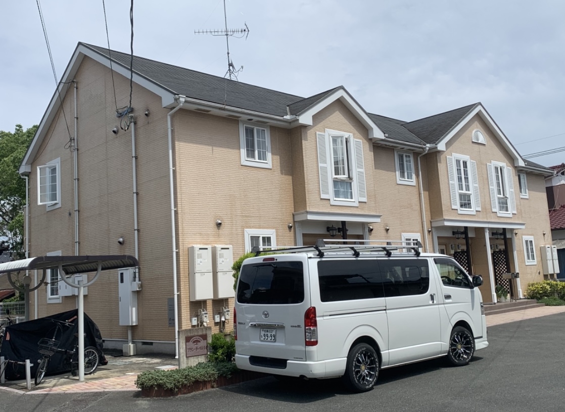 神埼市にある大東建託のアパートの塗り替え工事で、屋根をラジカル系塗料パーフェクトベスト、外壁を無機塗料EBムーンガード仕様にて塗装しました。