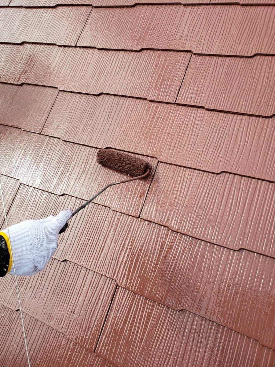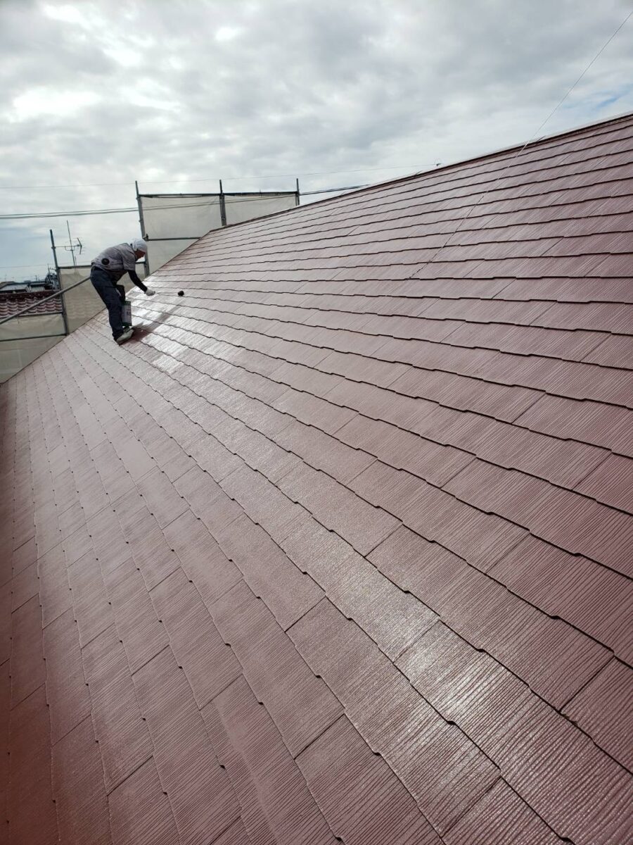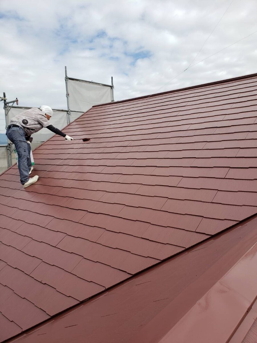 まずは屋根の上塗り状況です。