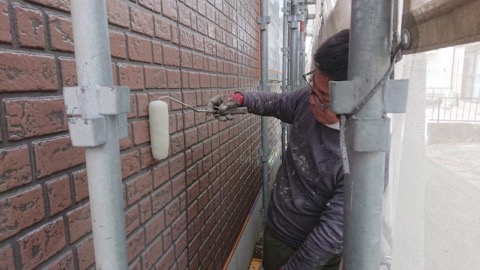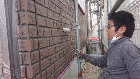 翌日、一階外壁の上塗りをやっていきます。