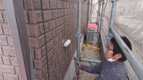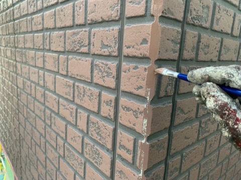 先ずは一階外壁の下塗り状況なんですが、その前に下準備で、外壁劣化部分を色合わせして補修塗りしていきます。