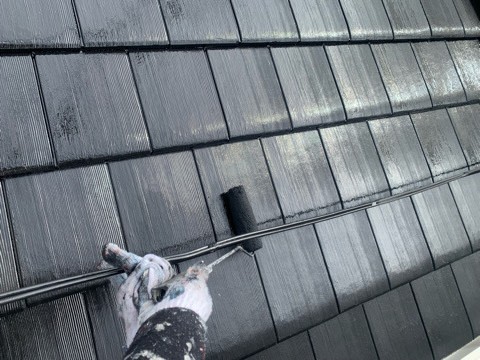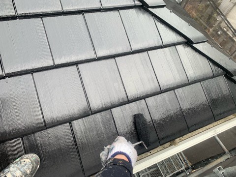続きまして、屋根の上塗り状況です。
