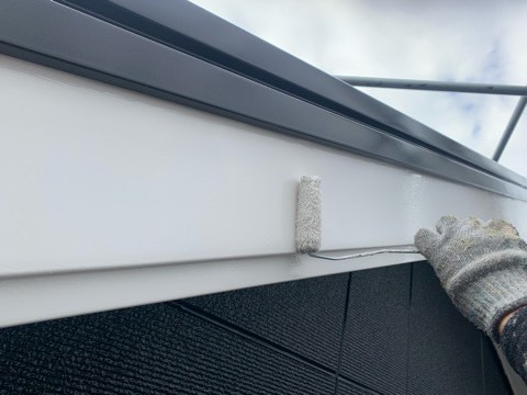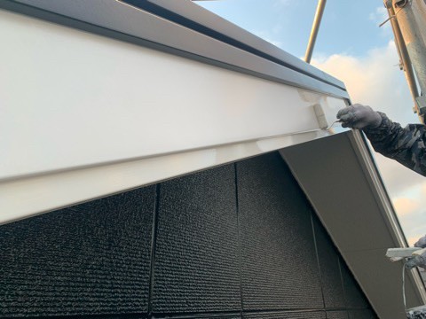 続きまして、破風、軒樋の上塗り状況です。