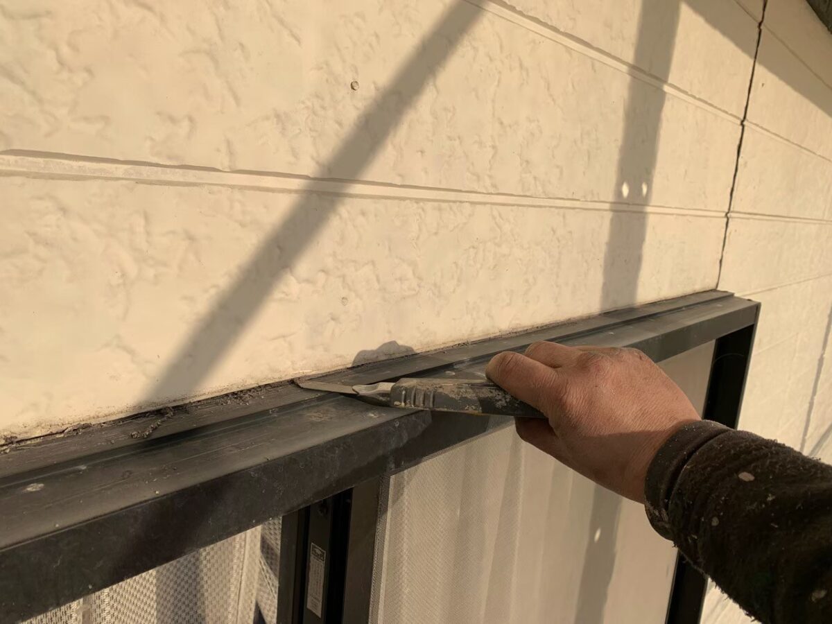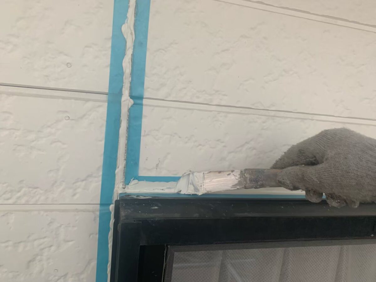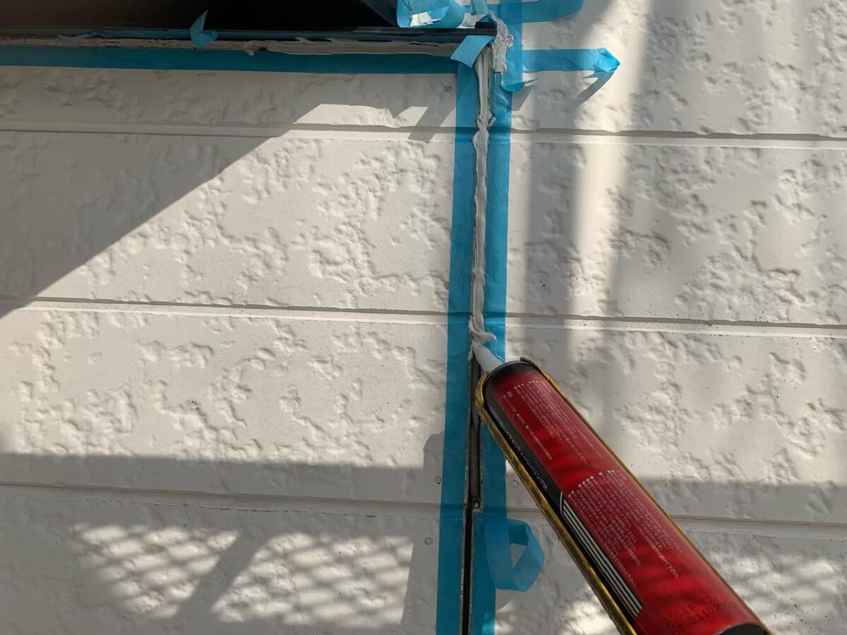 残りの附帯部のシーリングも外壁と同様にして、打設していきます。