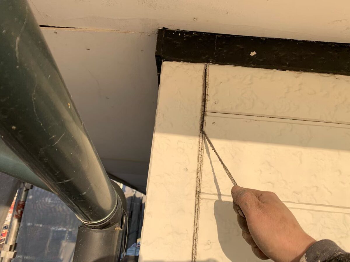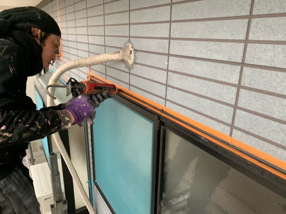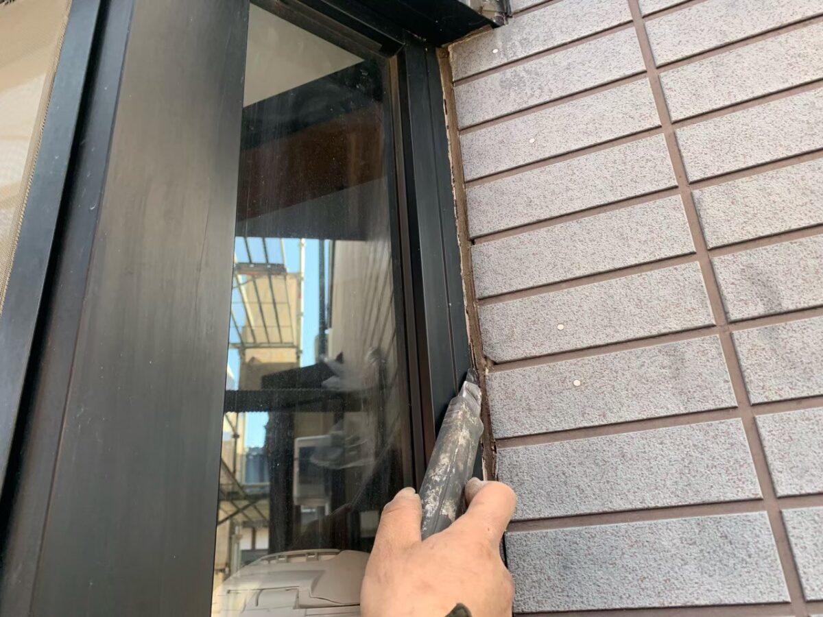 残りの附帯部のシーリングも外壁と同様にして、打設していきます。