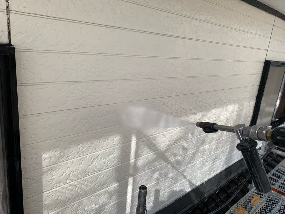 シーリング工事も終わり、翌日には高圧ジェット洗浄を行います。