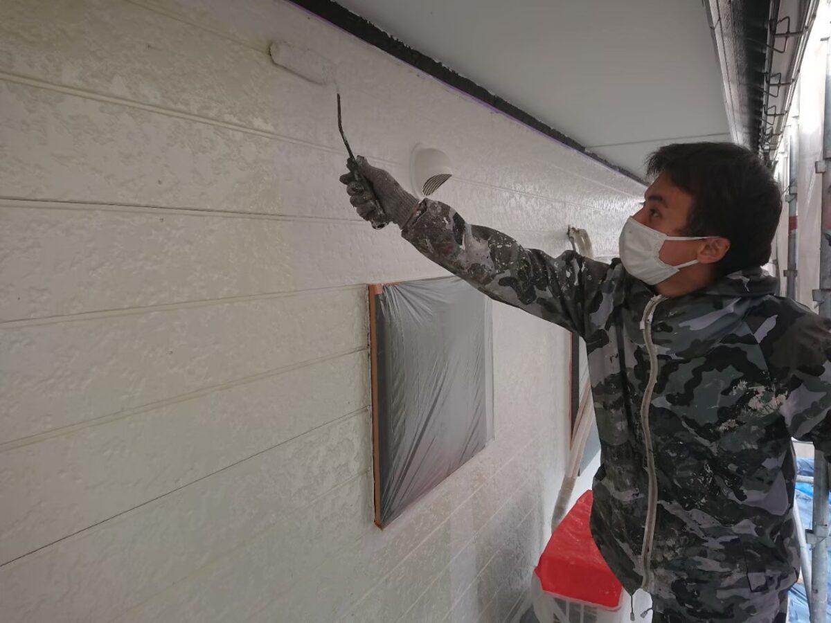 続きまして、外壁2階の中塗り状況です。