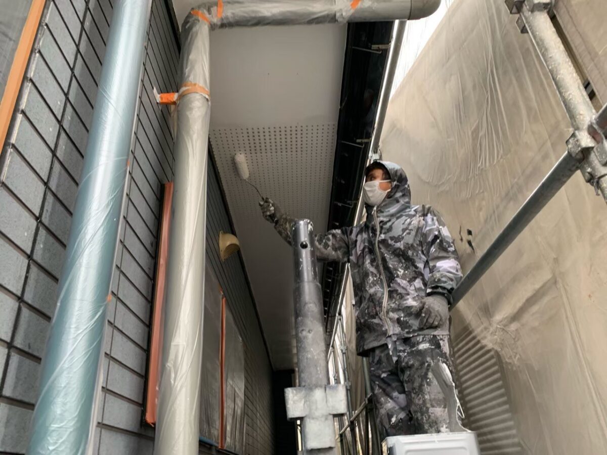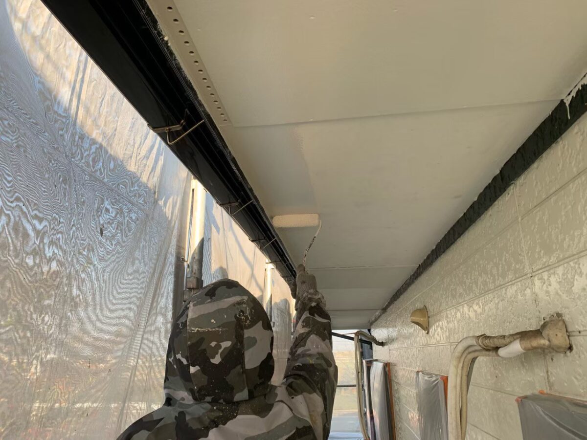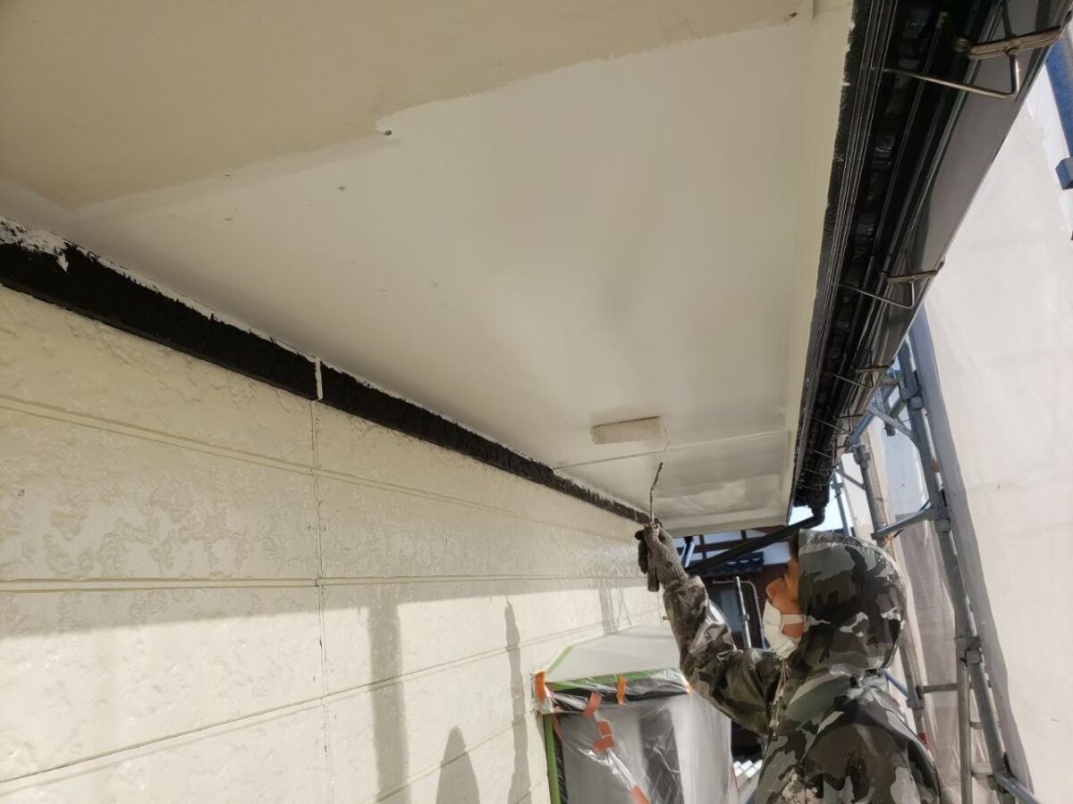 まずは軒裏の上塗り状況です。