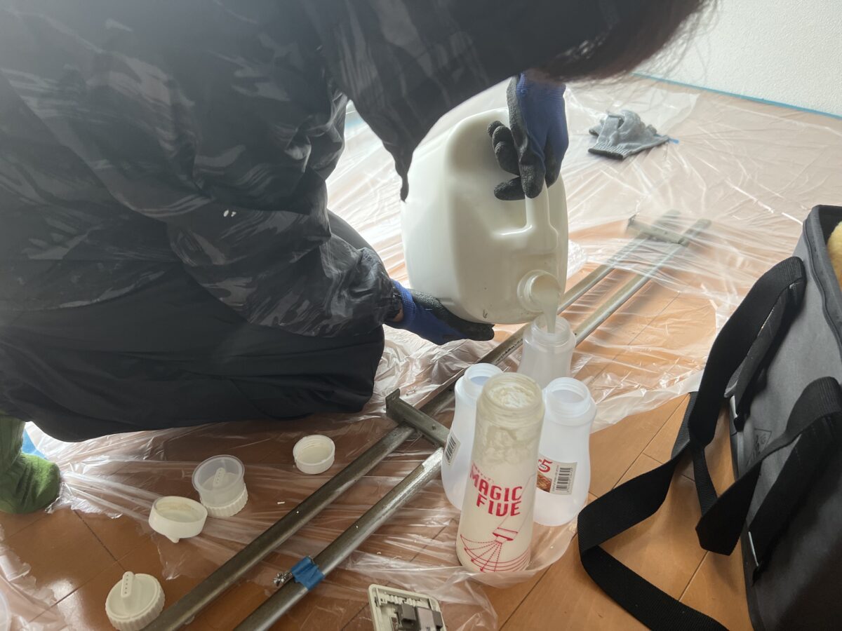 👇 これが液剤です。これを塗り付けていきます。