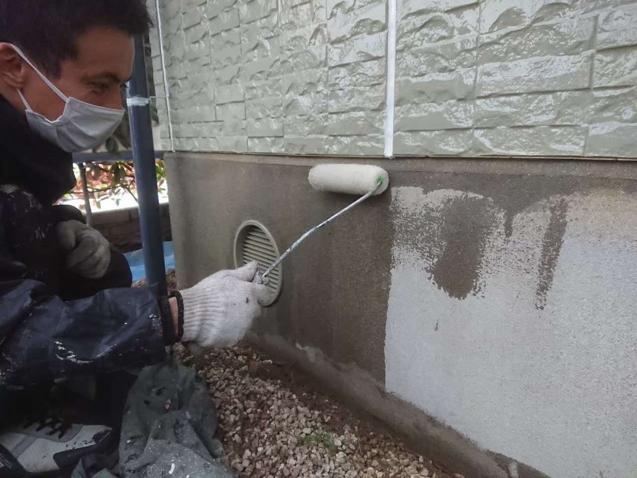 こちらの御宅は基礎の立ち上がり部も塗りたいとのご意向でしたので、そちらにも下塗りを施しております。