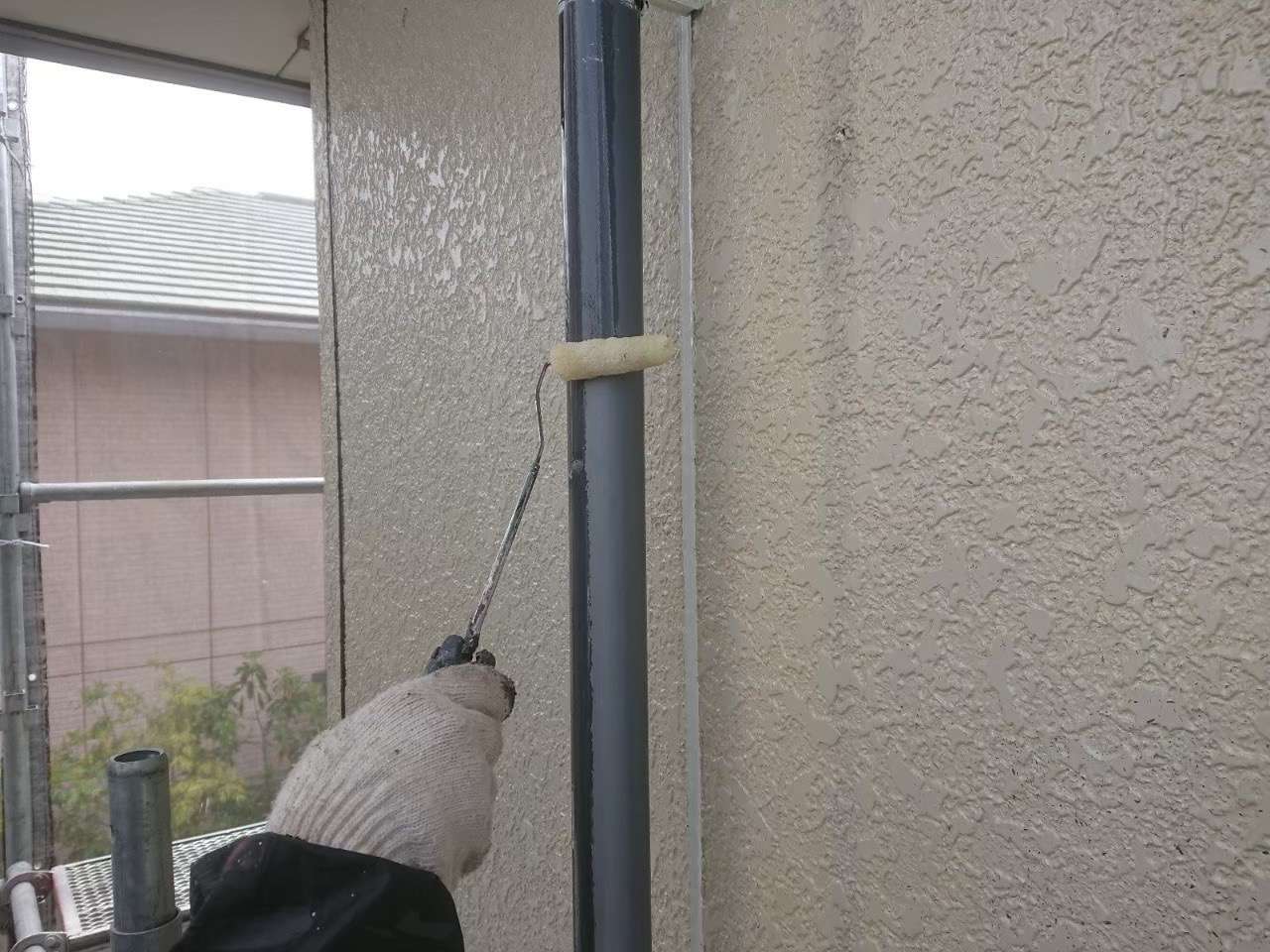 他社さんでは附帯部になかなか下塗りをされないのですが、当社では附帯部にもしっかりと下塗りを塗っていきます。
