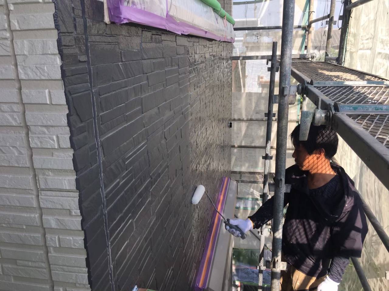 ローラーやハケを用いて塗り残しが無いよう、しっかりと塗り付けていきます。