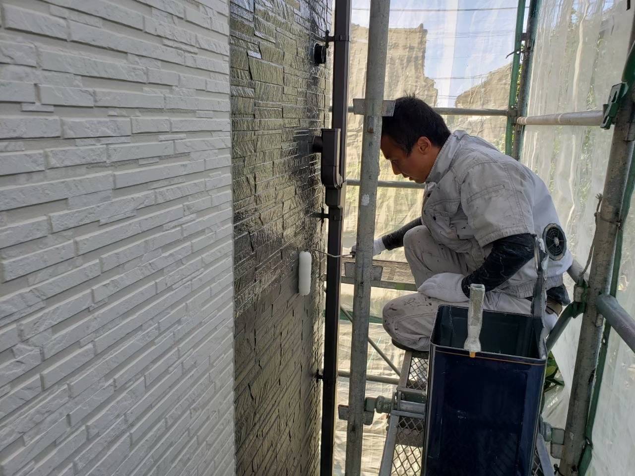 佐賀市川副町 外壁塗装 下塗り タテイルα美館