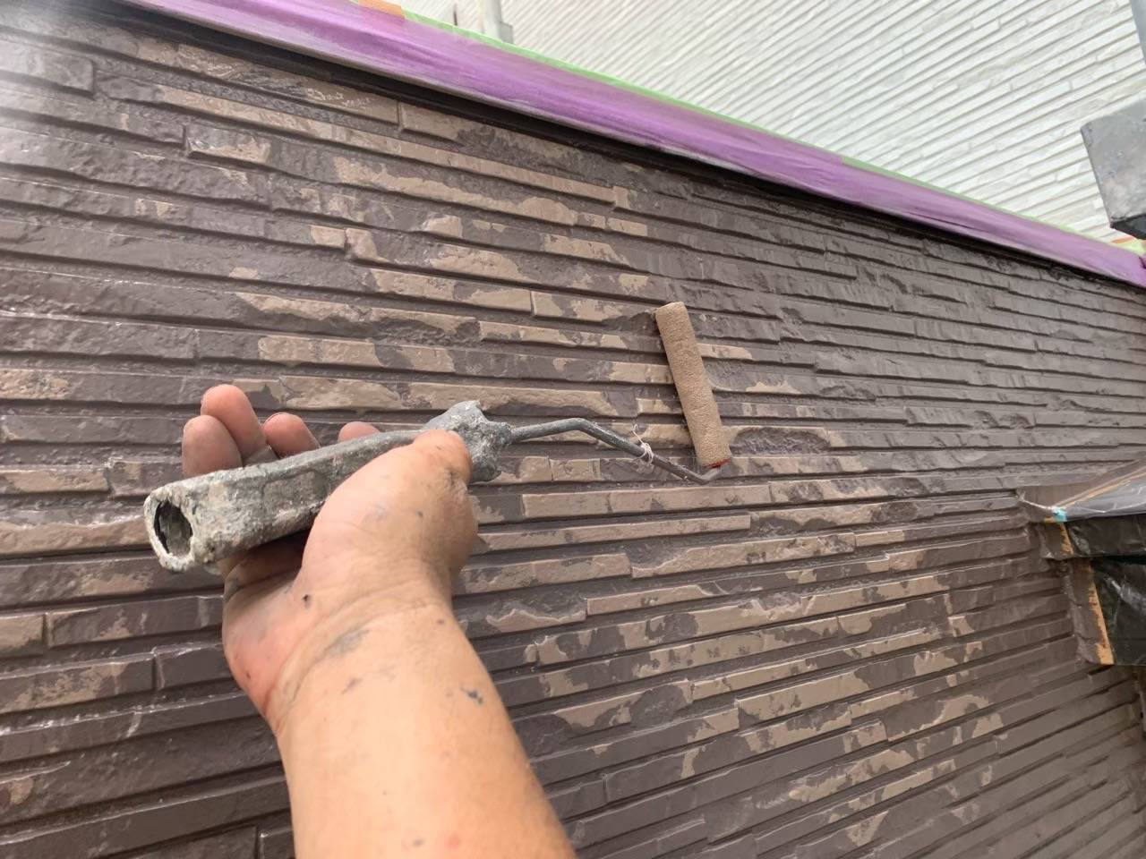 毛の短いローラーを使用して限りなく力を抜いてゆっくり塗りつけていきます。