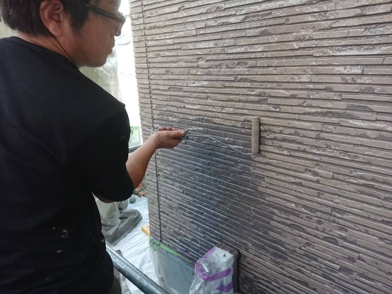今回の佐賀市鍋島町蛎久の御宅は外壁多彩模様仕上げの上塗り状況をお伝えします。