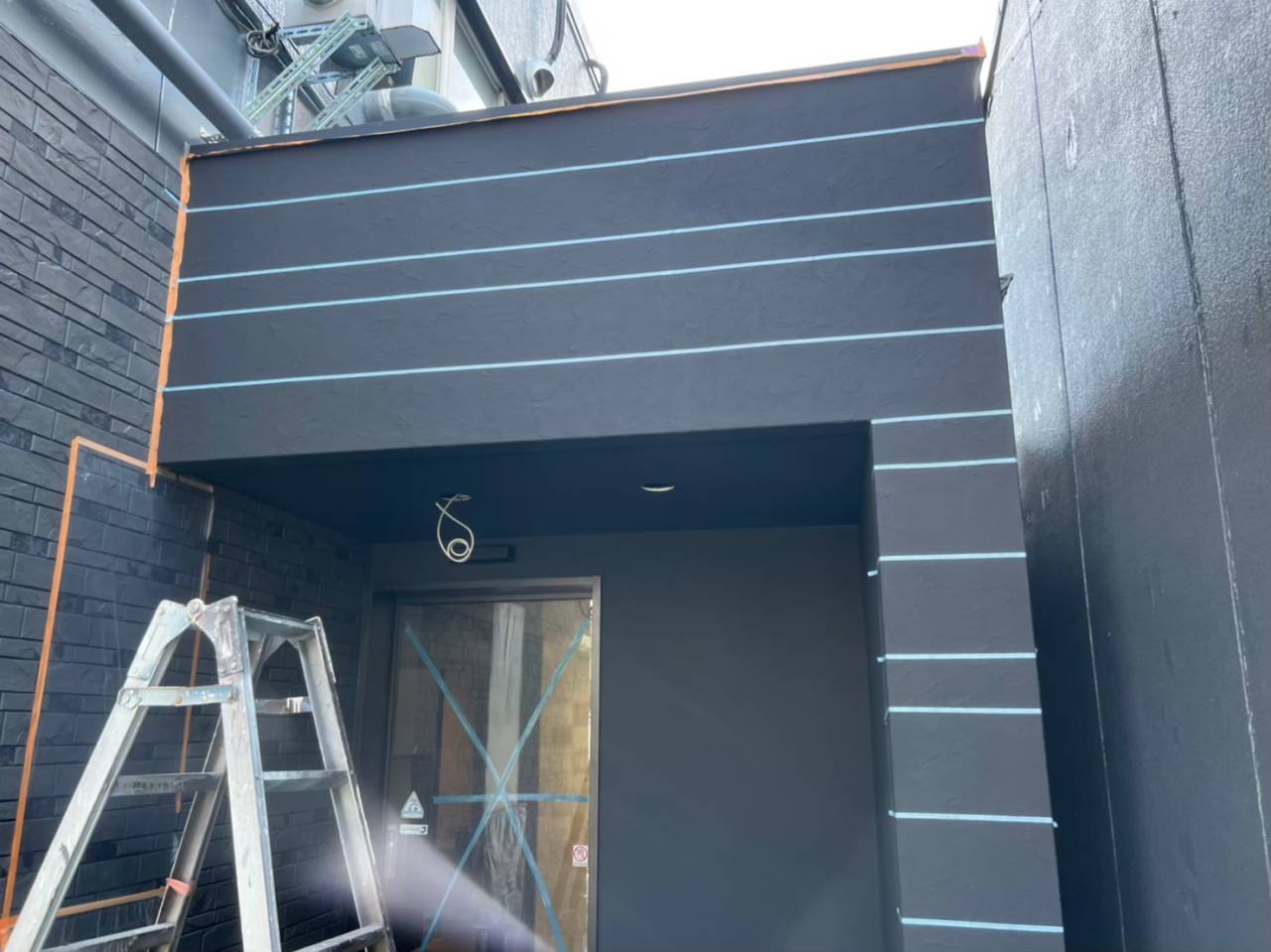 佐賀駅北口前の焼き鳥かどや様の外壁塗装工事は今回デザイン塗装をやっていきます。