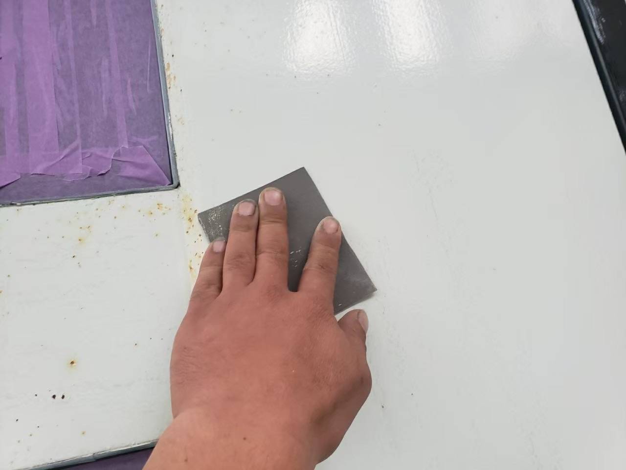 密着の良くない箇所や不要な付着物除去を目的として研磨していきます。
