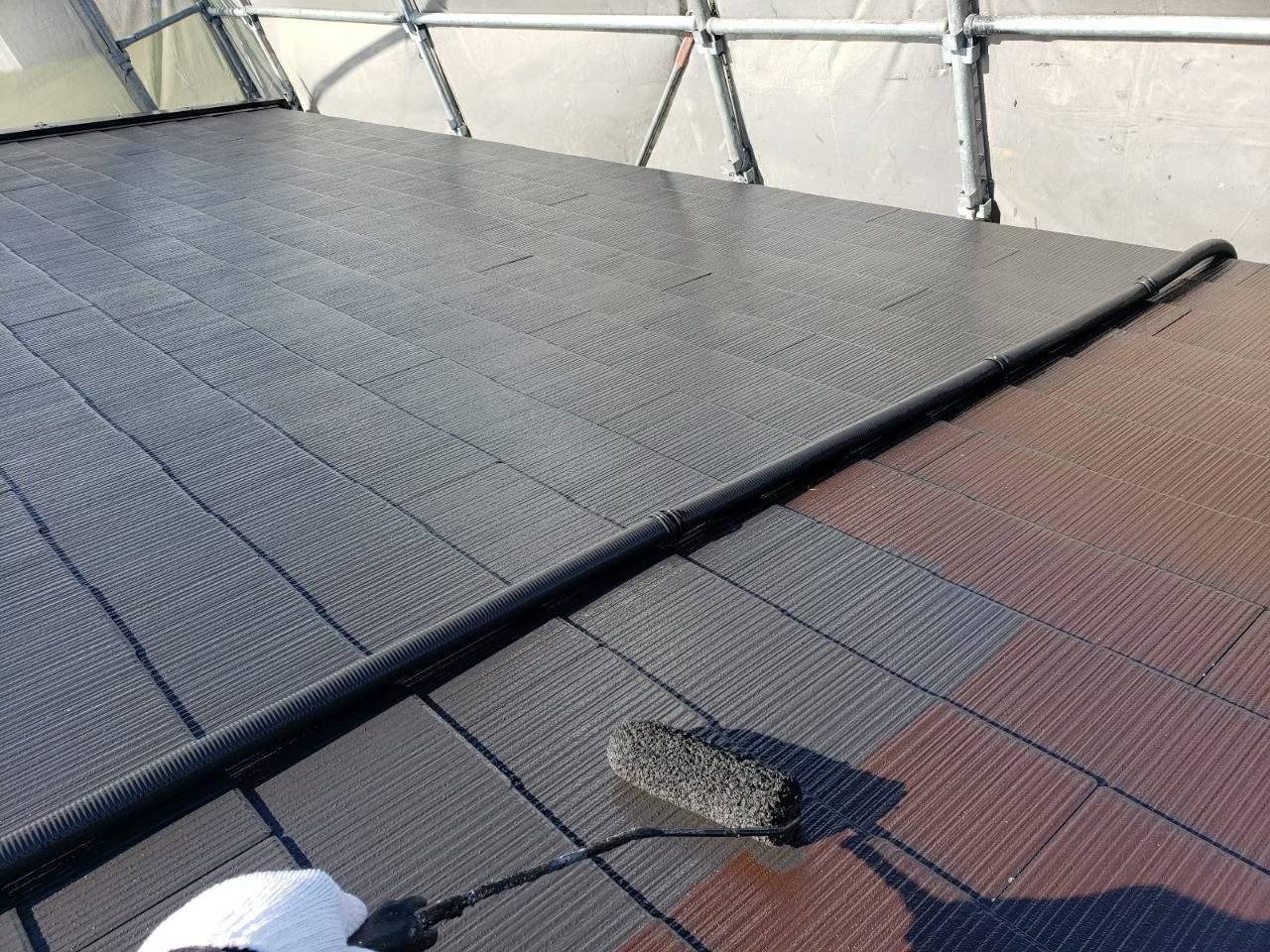ローラーにて手塗りでしっかりと厚みを確保しながら塗っていきます。