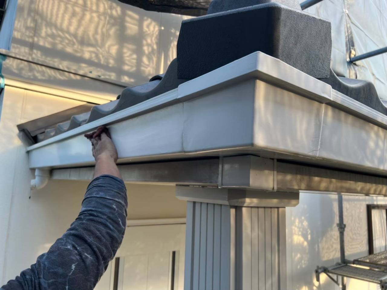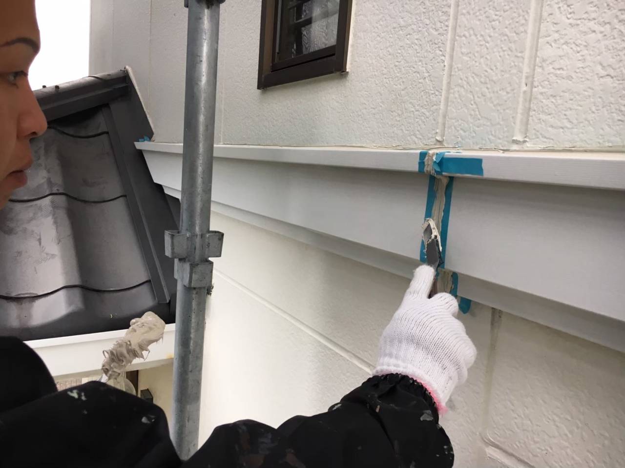 雨樋の研磨、耐水パテを使用しての穴埋め、オートンイクシードを使用しての長期耐候シーリングを行っております。