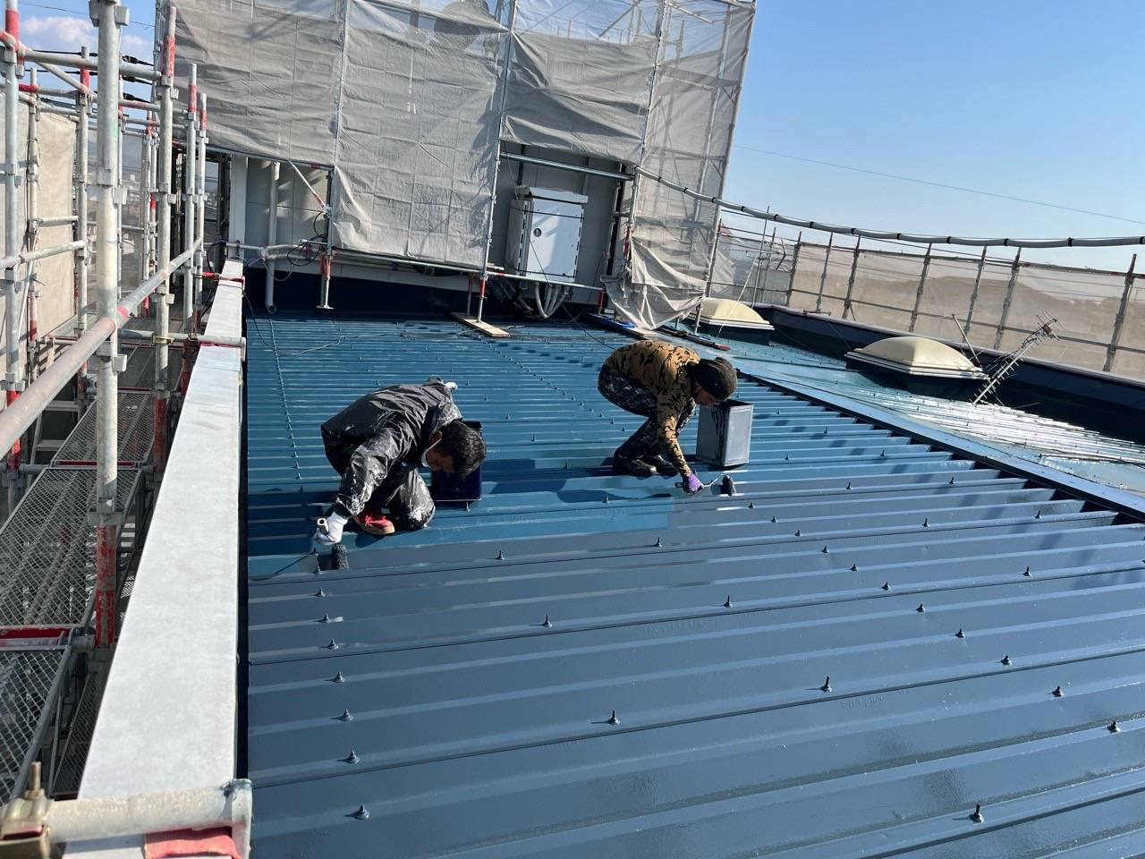 今回佐賀市高木瀬西のビルは屋根の中塗り・上塗り状況をお伝えします。