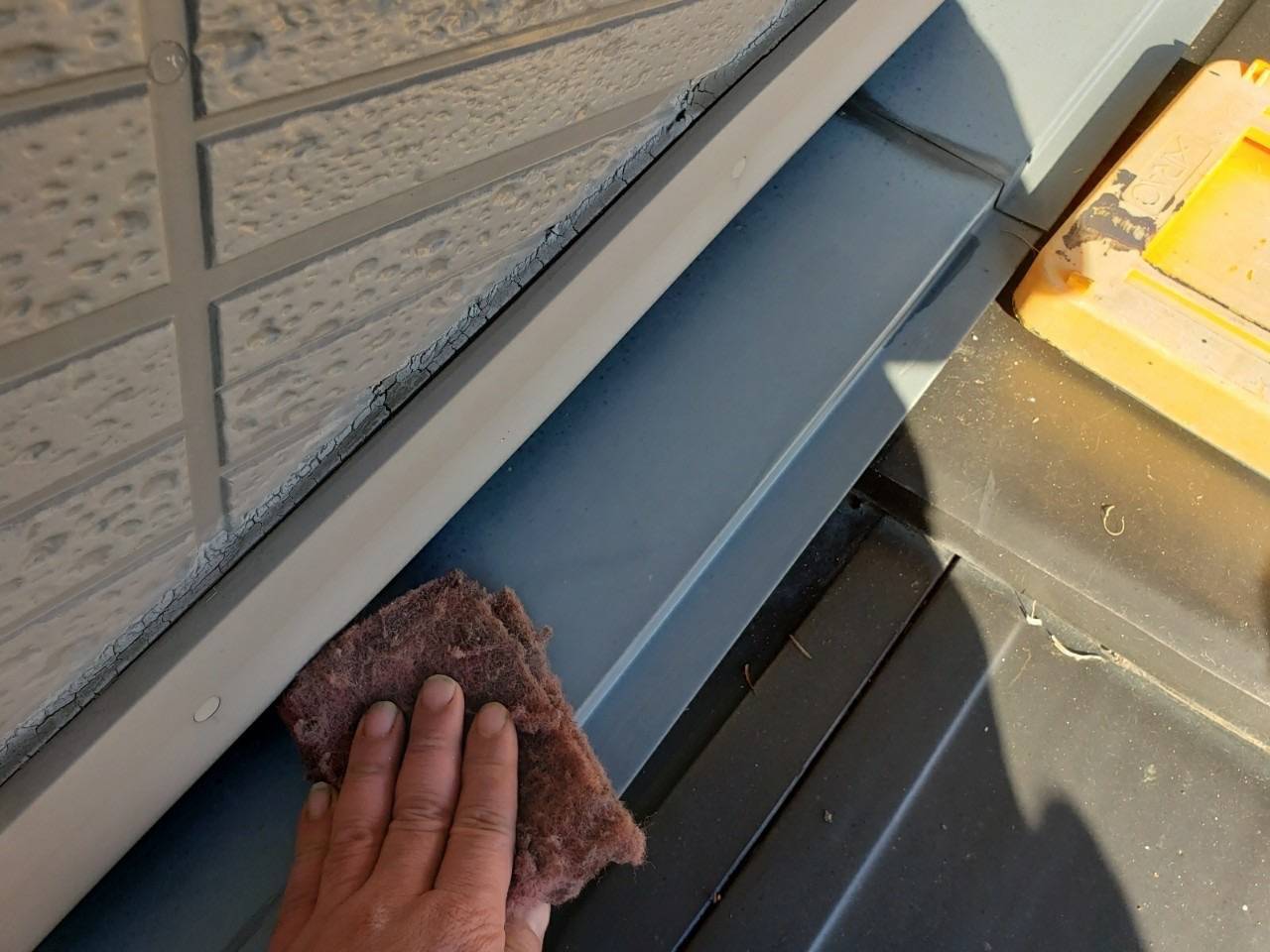 目荒らし作業といいまして、不要な付着物の除去、表面積増加による密着向上を目的とした工程となります。