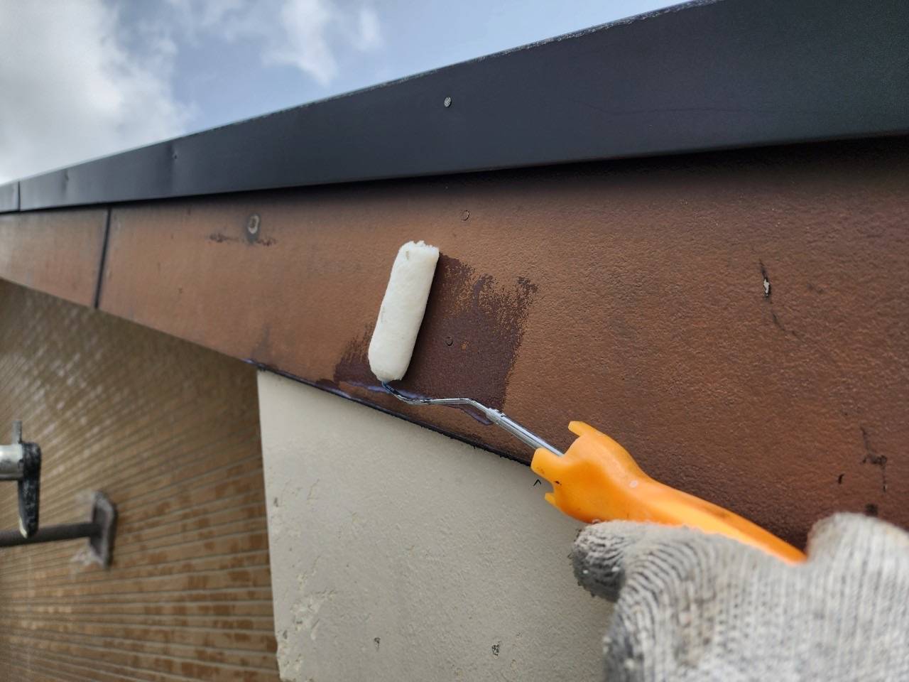 また、屋根の抑え部材や雨どいは研磨作業を行い、不要物やホコリの除去、密着力向上を図ります。