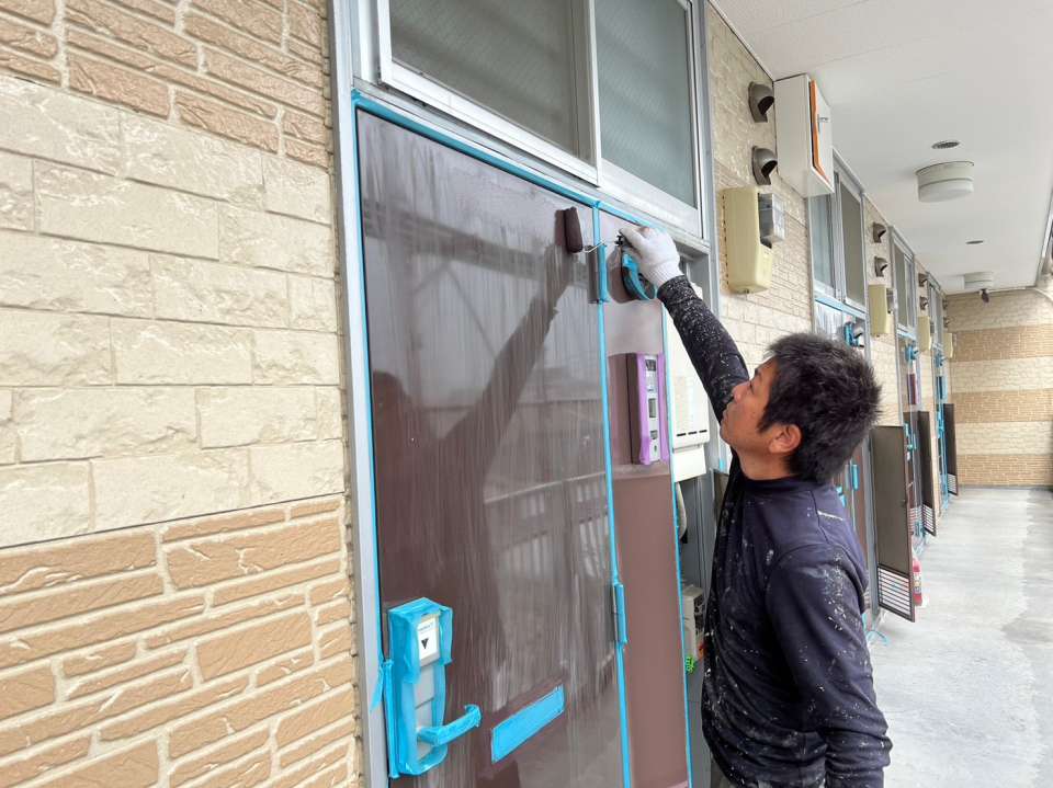 ハケやミニローラーを用いて均一に塗り広げていきます。