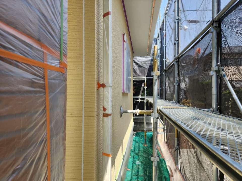 今回みやき町簑原の御宅は外壁の養生、下塗り状況をお伝えします。