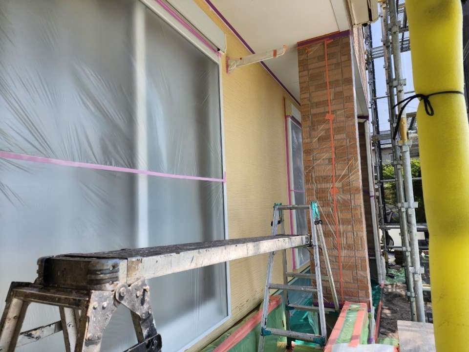 みやき町簑原 外壁塗装 下塗り 養生