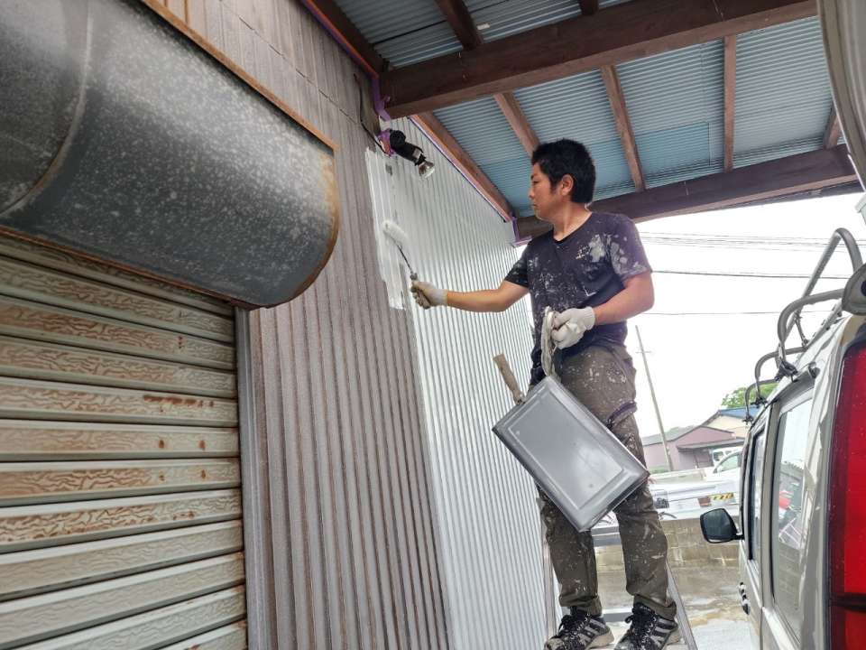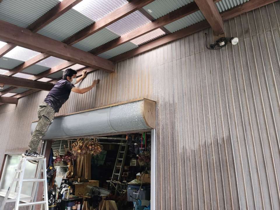 神埼市姉川 トタン小屋塗装工事 ケレン 下塗り