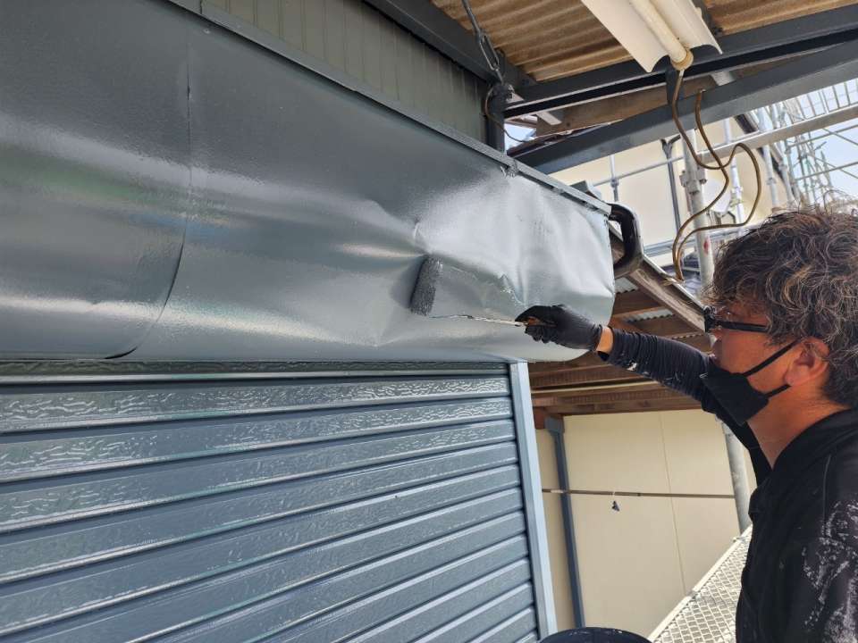 今回の神埼市姉川の御宅のトタン小屋塗装工事は外壁の中塗り、上塗り状況をお伝えします。