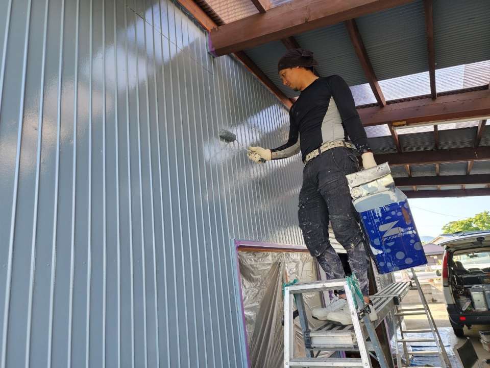 神埼市姉川 トタン小屋塗装工事 外壁塗装 中塗り 上塗り