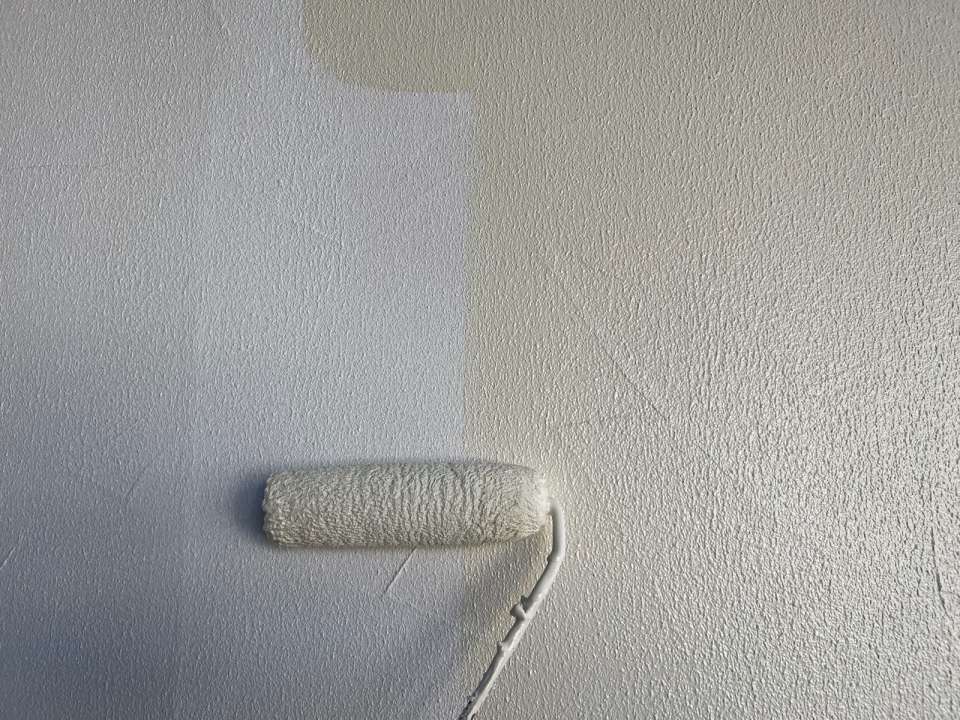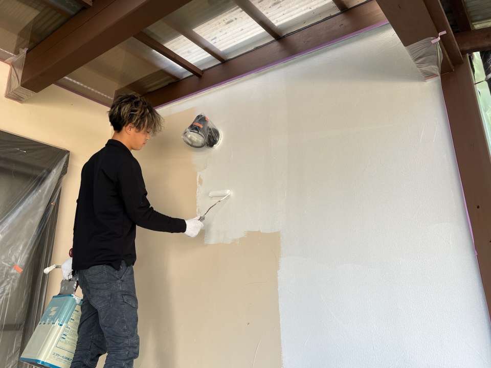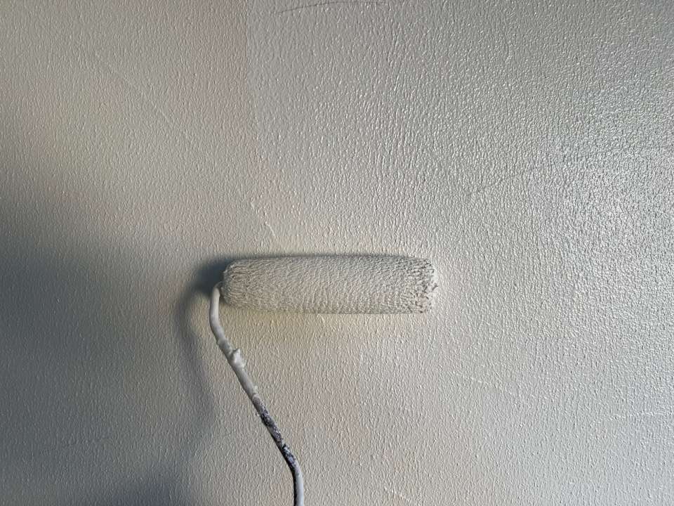 白色の下塗りを塗ってから仕上げにエスケー化研のアートフレッシュシリコンを塗装します。