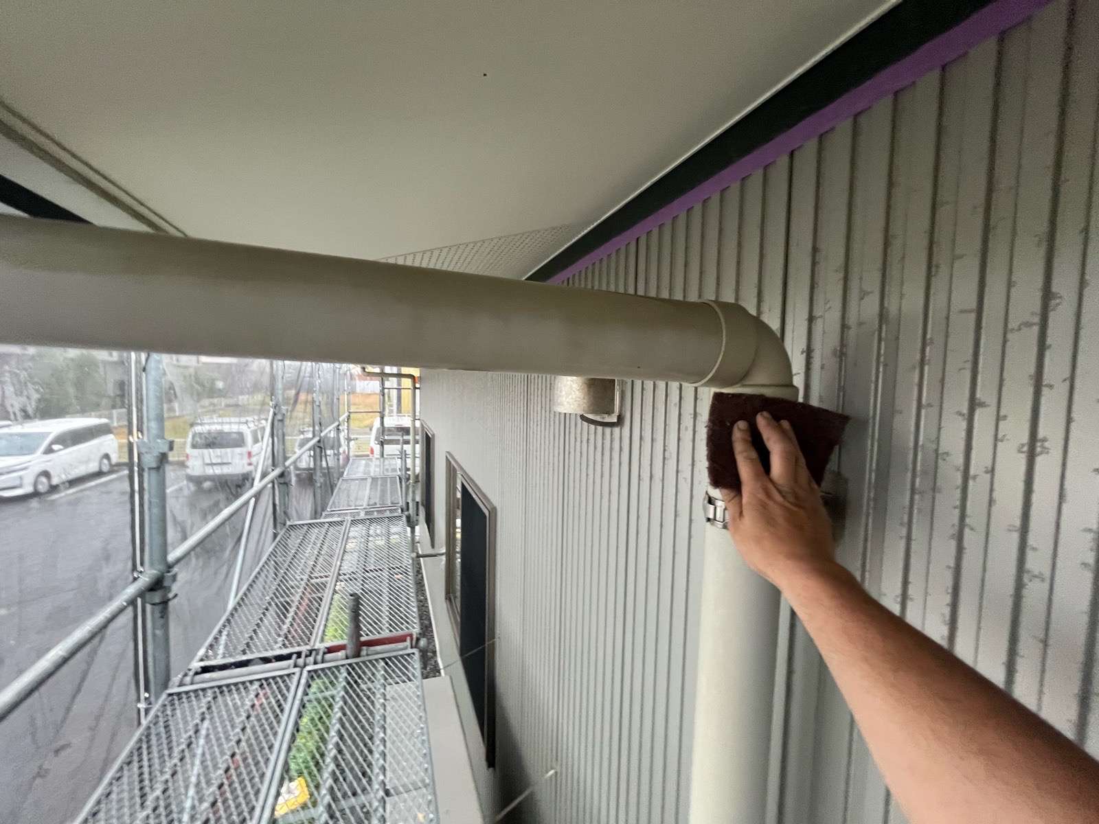 塗装前に 表面の浮き・ザラザラとした手触りの箇所 逆にツルツルし過ぎる箇所等を研磨したり、金属部のサビを除去いたします。