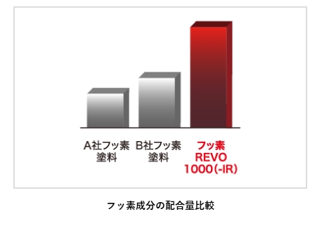 ①一般的なフッ素塗料と比較してフッ素成分を約2倍配合