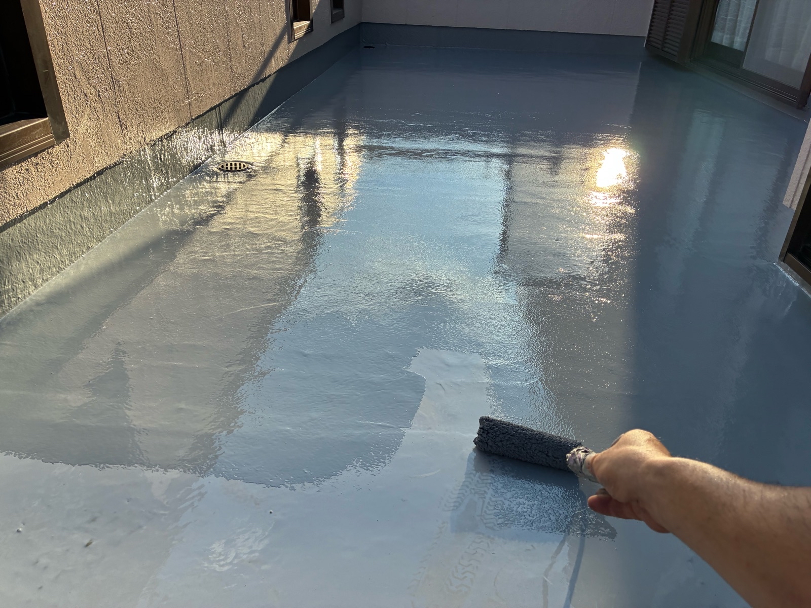 燃えるような暑さの中でのプロの技術。元祖防水の王様的工法です。