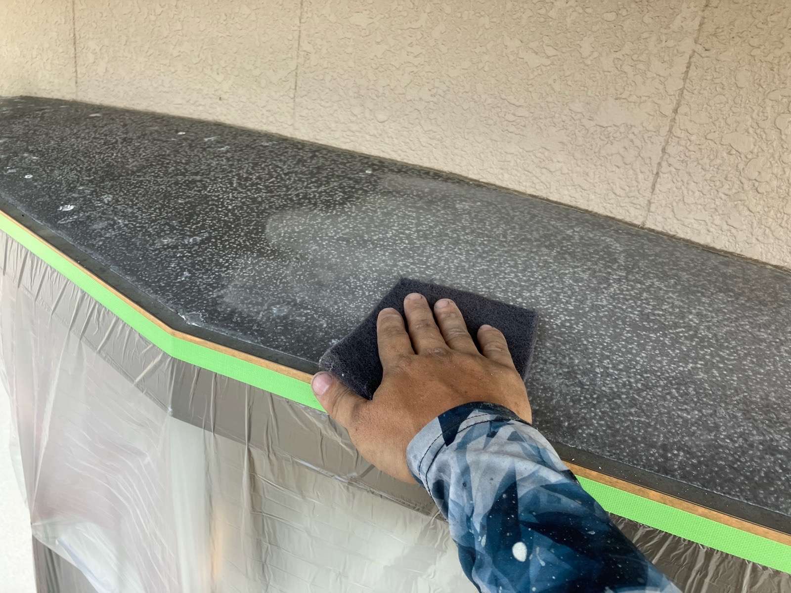 平滑化(目荒らし)塗料の密着性を高めるため、表面の凹凸を整える。