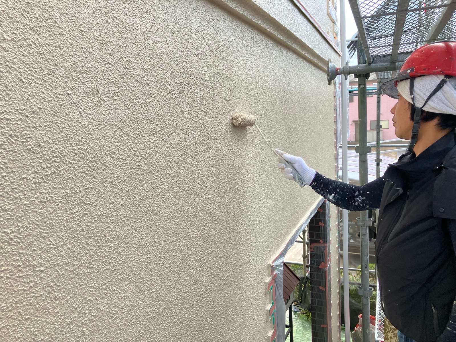 次に上塗りは、外観の美しさを決定づける最終仕上げの層です。中塗りが乾燥した後に塗り重ねられ、色艶・質感・防汚性・防水性など、外壁全体の仕上がり性能を高めます。