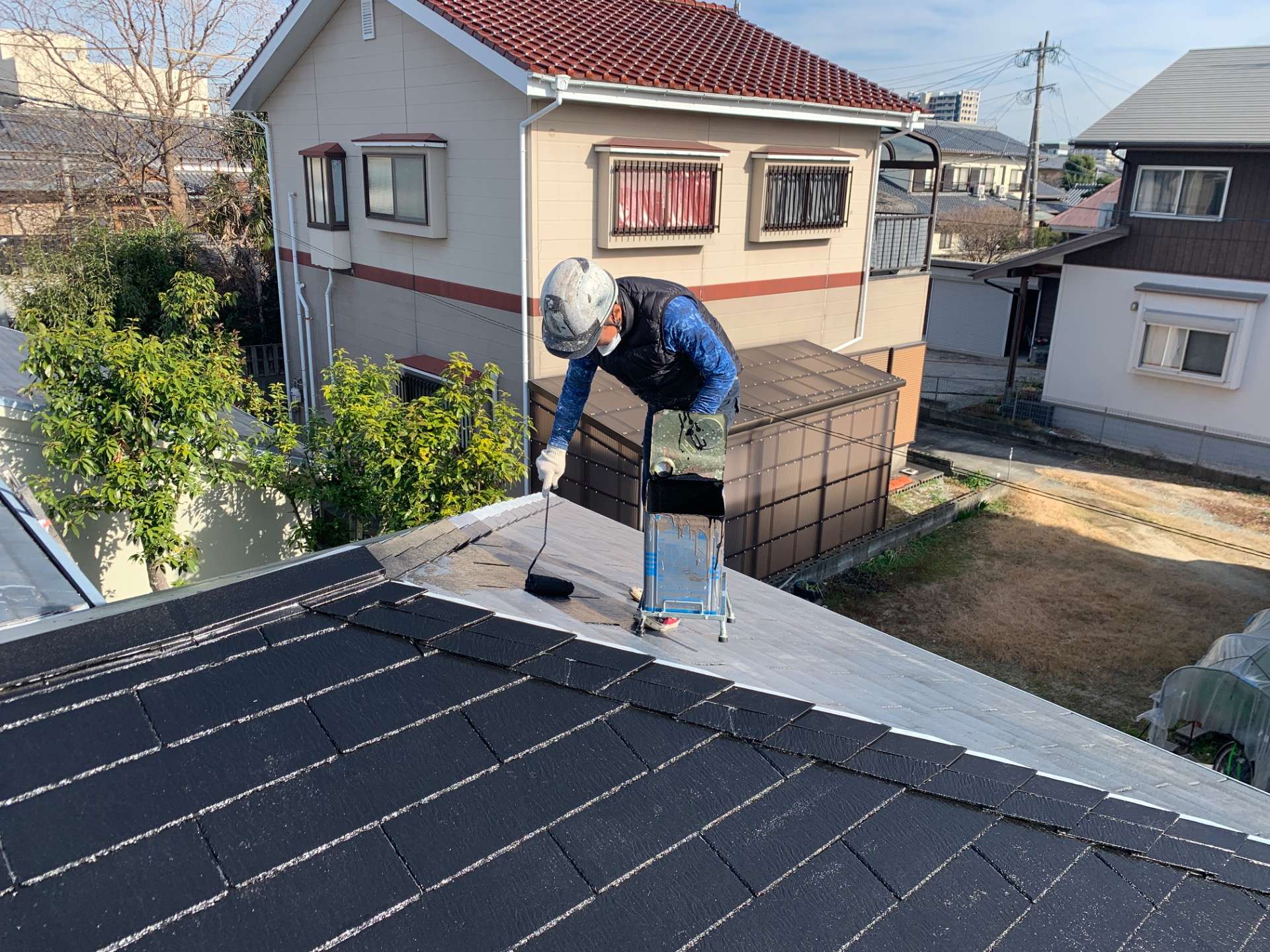 福岡県柳川市 屋根塗装 上塗り1回目