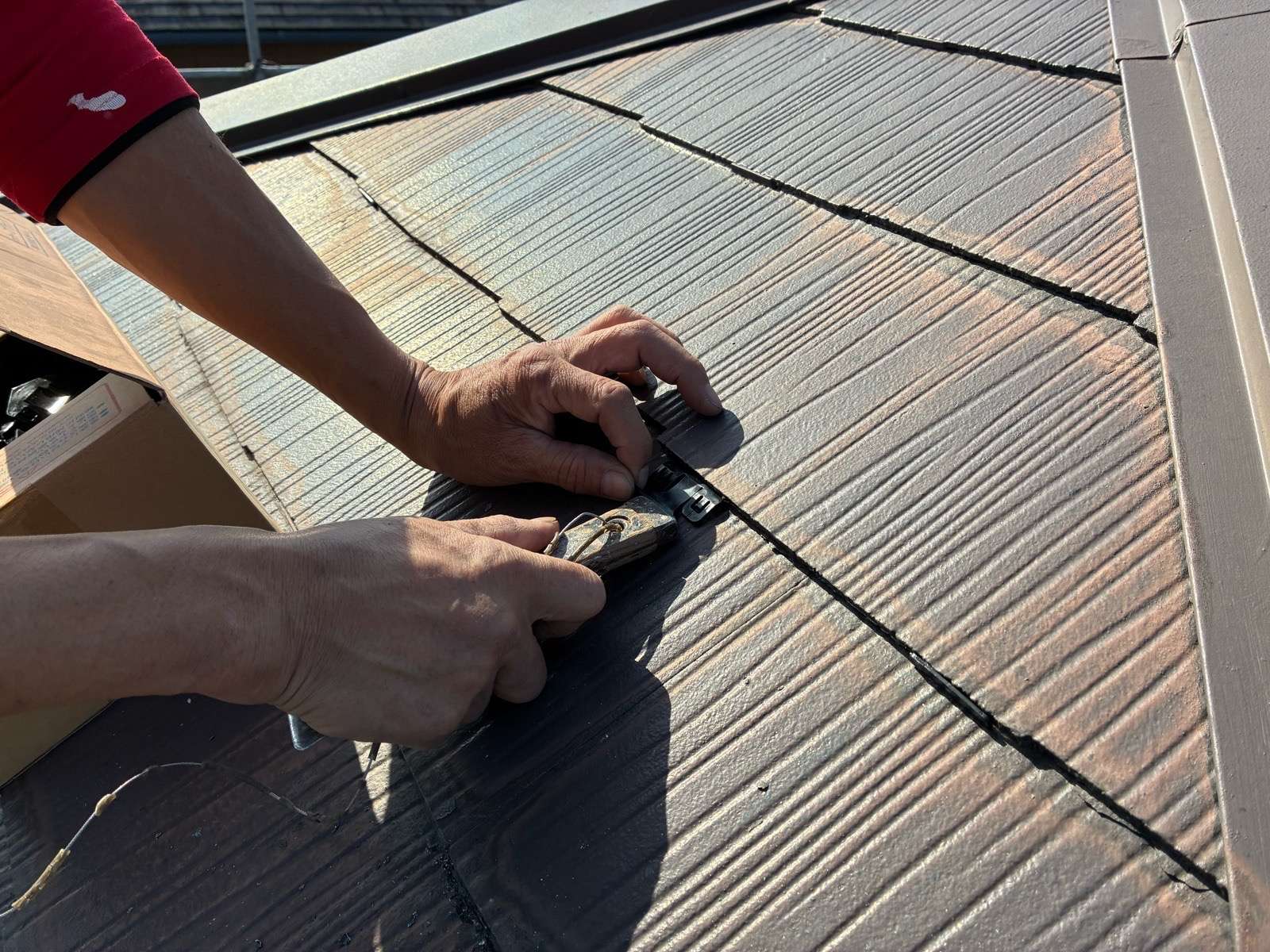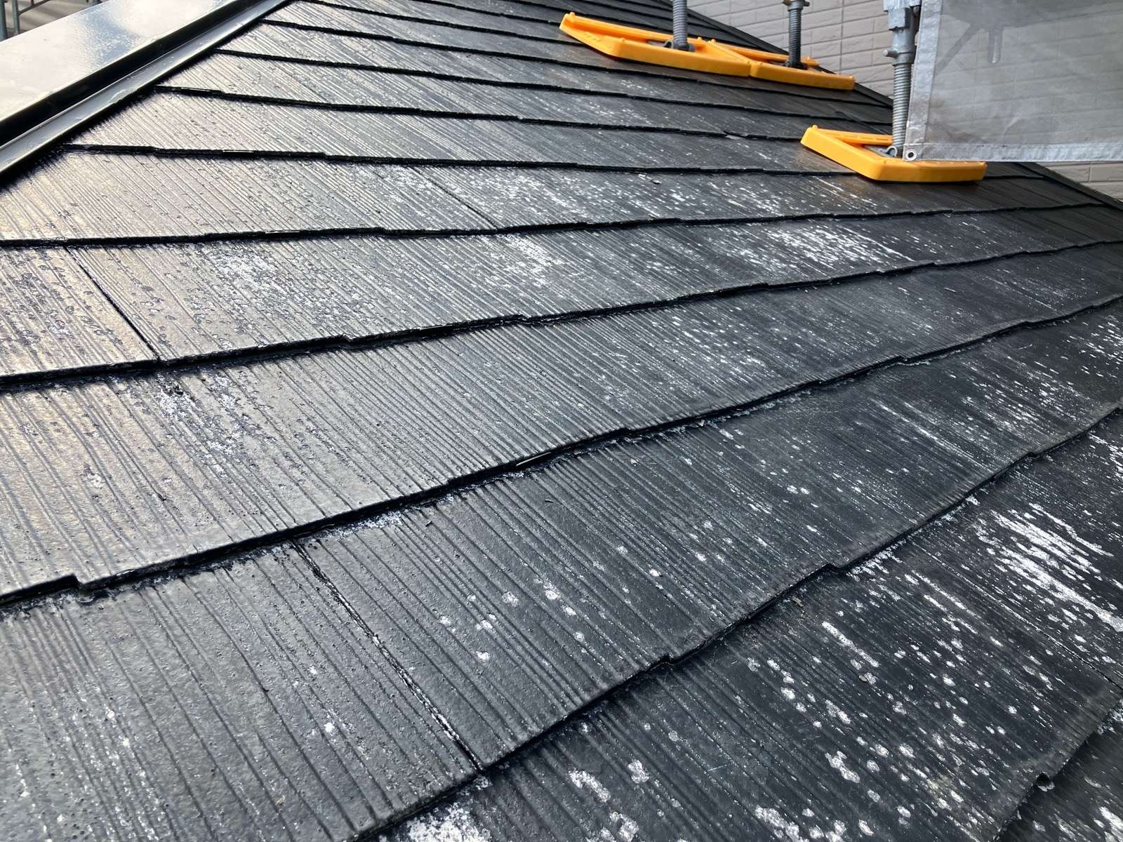 皆様こんにちは、今回は、屋根塗装タスペーサー設置の模様をレポートしていきますんっレポートの前に、当社が、設置した、タスペーサーではないタスペーサーが設置されてますねー(黄色マル)正しいタス…
