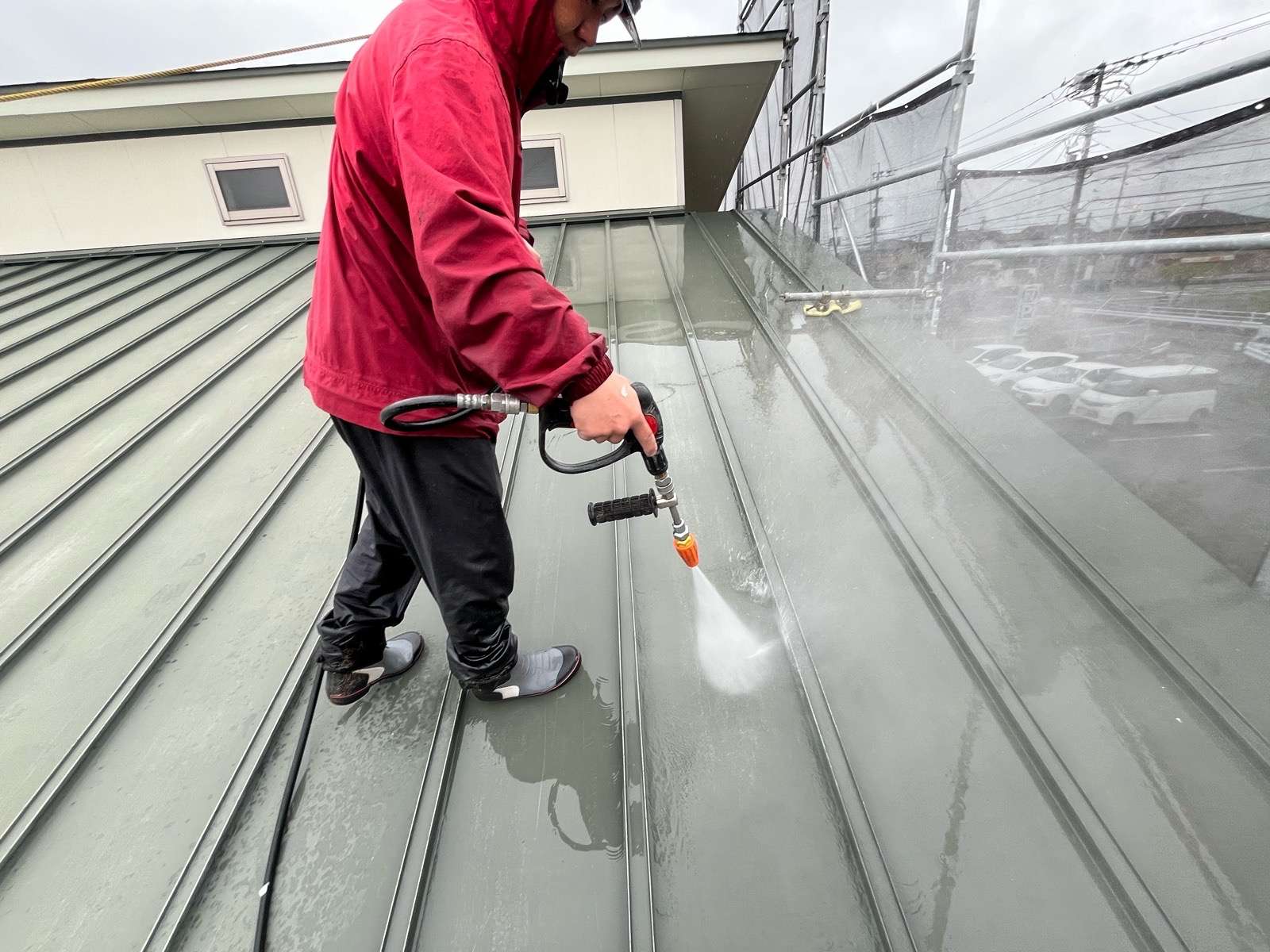 皆様こんにちは今回は、佐賀市兵庫町高圧洗浄の様子をお届けいたします。高圧洗浄とは塗装工事の最初に行う重要な下地処理で、外壁や屋根に付着した汚れコケ・カビ旧塗膜の粉(チョーキング)などを高圧…